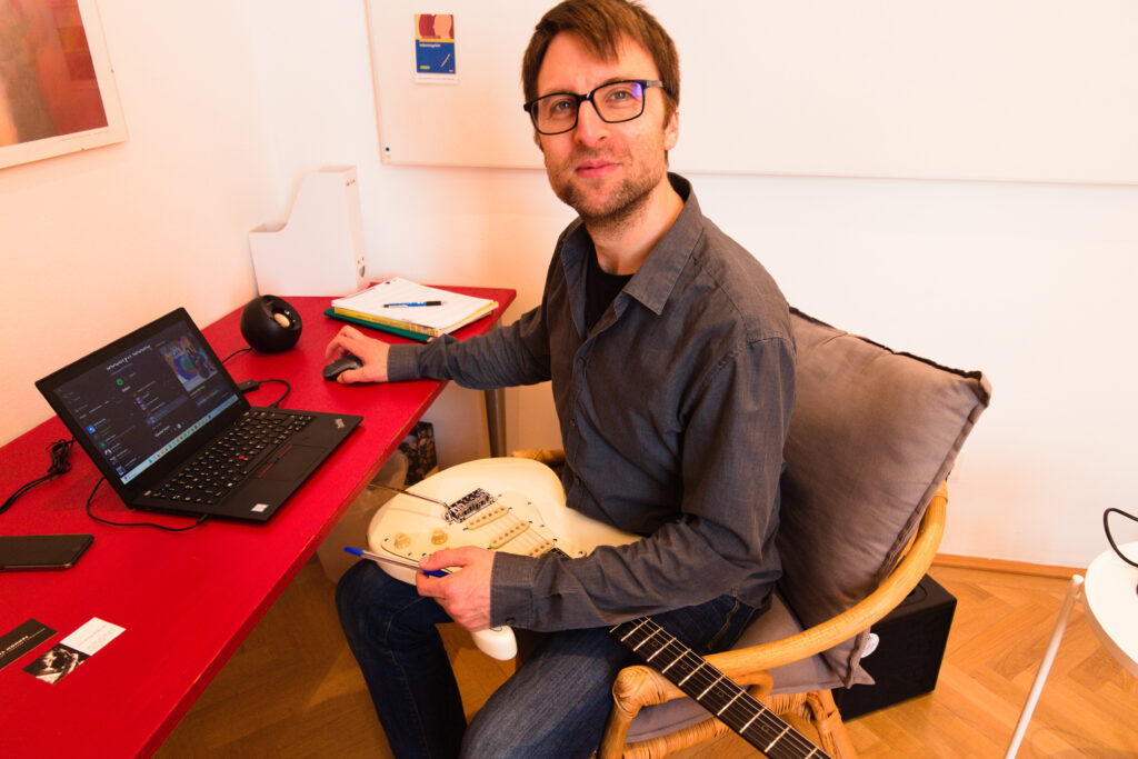 Bildbeschreibung: Sascha, dein Gitarrenlehrer, sitzt hier nur herum bis nach der Lücke der nächste Schüler kommt 🙂